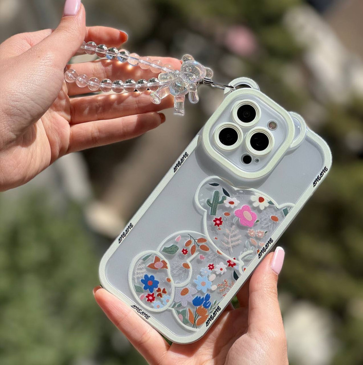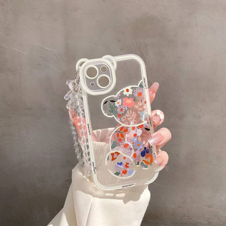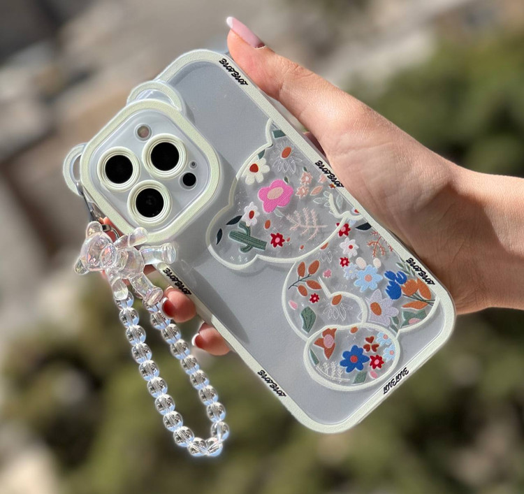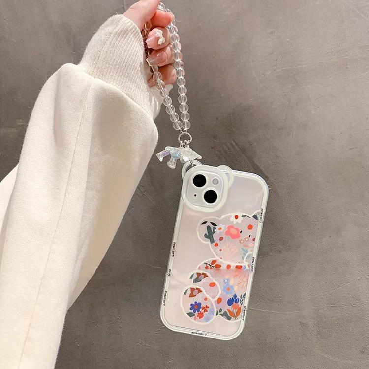 قاب خرس گلدار Flower Bear همراه بند آویز برای آیفون
