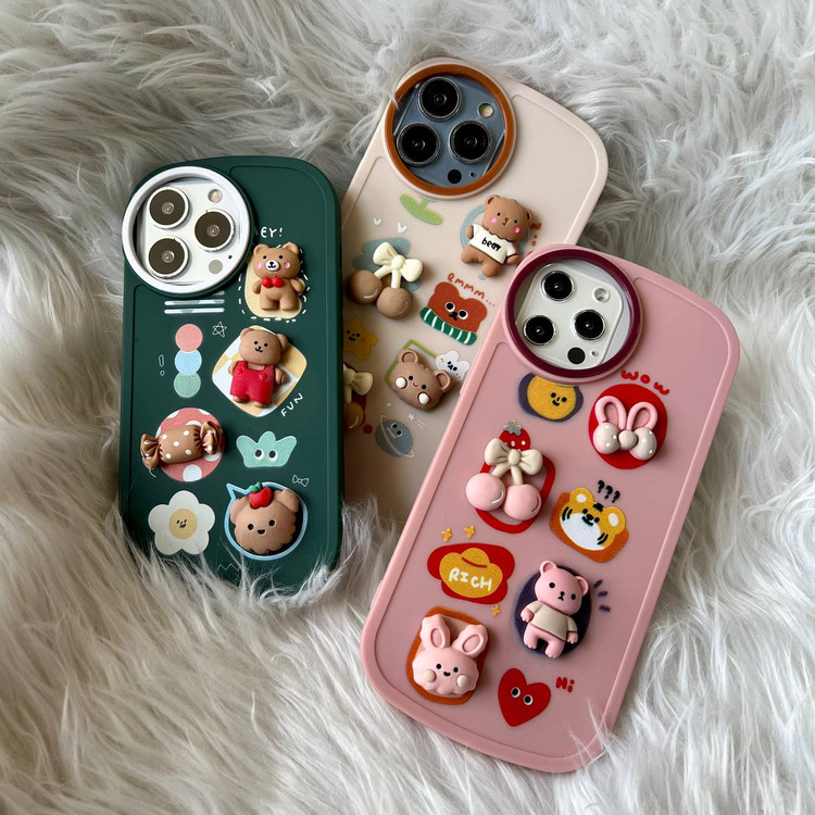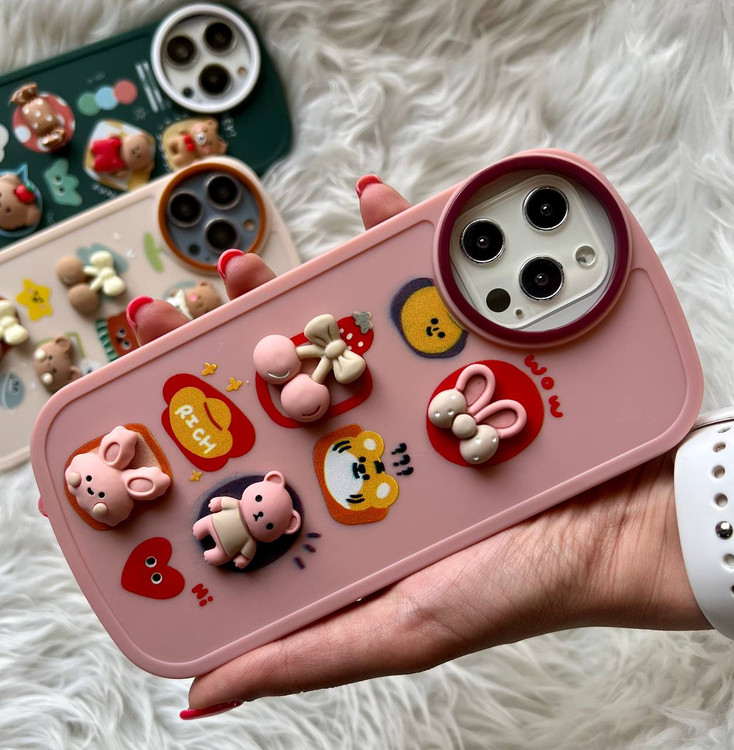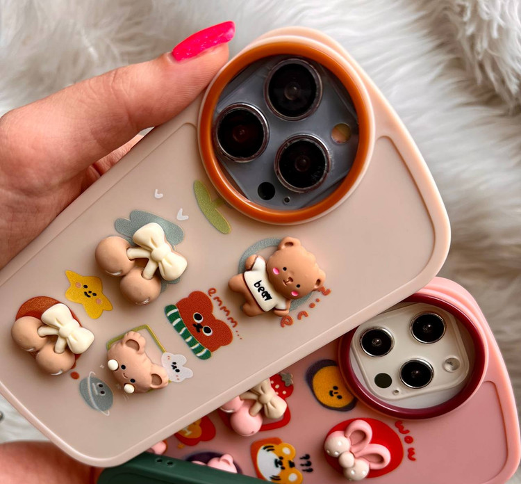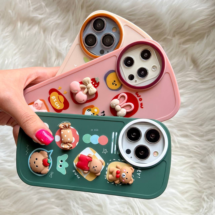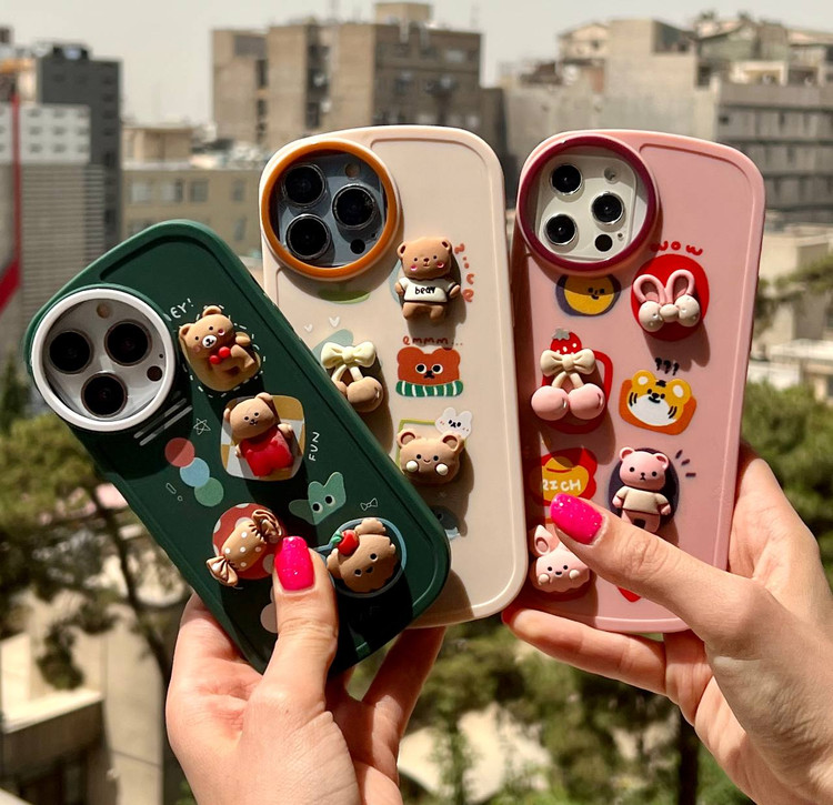 قاب گوشی خرس برجسته لنز رینگی آیفون