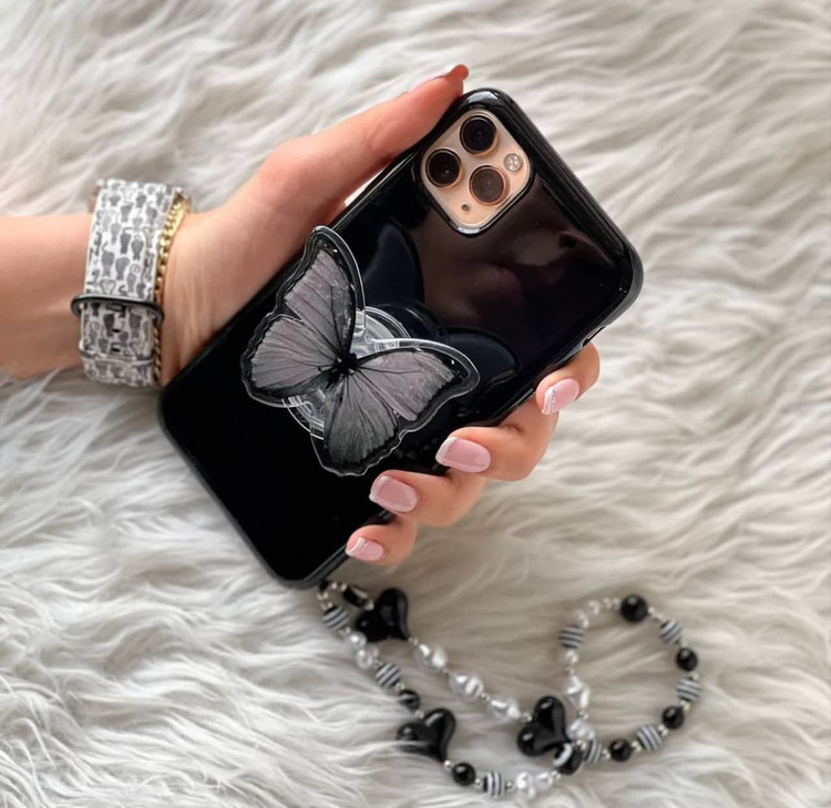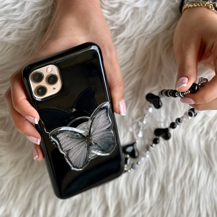 قاب پروانه مشکی آویزدار آیفون
